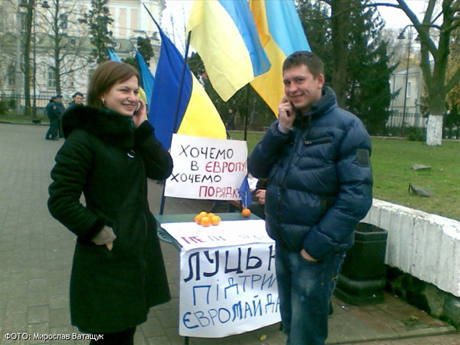 Евромайданы в регионах: в Луцке раздают апельсины, в Днепропетровске угрожают "титушкамы"
