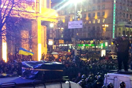 На Майдане Независимости в Киеве заблокировали две машины, которые везли аппаратуру на "Евромайдан".