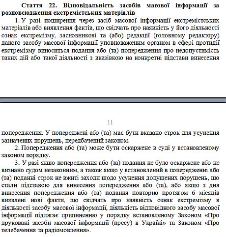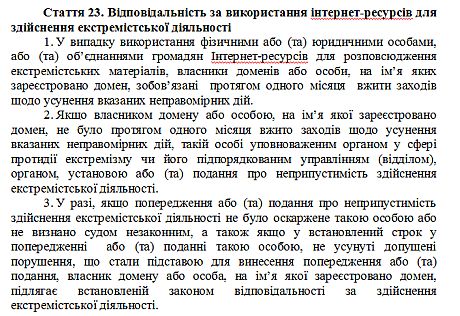 Депутат от Партии регионов Вадим Колесниченко зарегистрировал законопроект о "О противодействии экстремизму", который предусматривает закрытие СМИ, разместивших информацию, направленную на вмешательство в деятельность органов власти.
