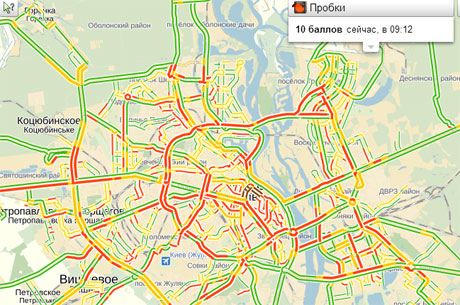 В Киеве по состоянию на 9:00 образовались огромные пробки.