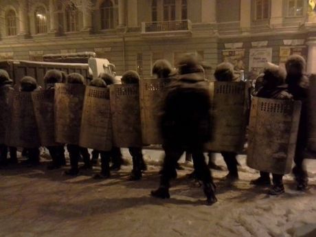 Отряд внутренних войск окружил блокпост на углу улицы Грушевского и Крепостного переулка.