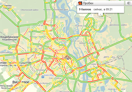 Так, по данным Яндекс-пробки, по состоянию на 9:25 уровень пробок достигает 9 баллов.