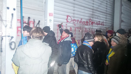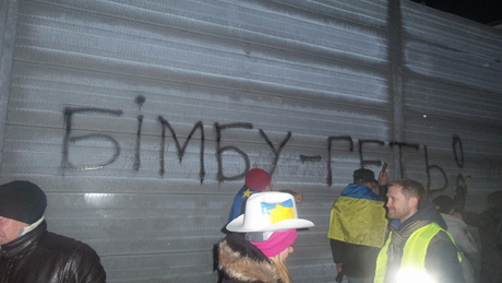 Митингующие приехали к Азарову, Рыбаку и Ющенко и написали требования на заборе
