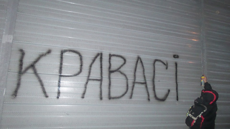 "Они стучат в металлический забор и расписывают ворота краской. Камеры наблюдения активисты закрыли национальными флагами", - говорится в сообщении.