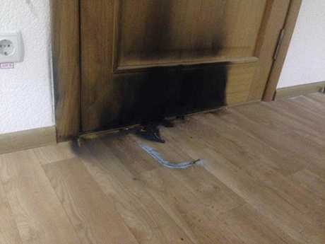 Огонь успел повредить пол и часть двери, однако за несколько минут он был локализован охраной дома.