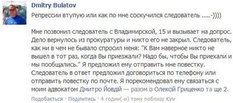 "Мне позвонил следователь с Владимирской, 15 и вызывает на допрос. Дело вернули из прокуратуры и никто его не закрывал", - рассказал Булатов.