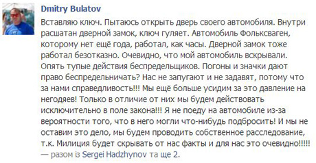 Также Булатов рассказал, что в его машину вероятно кто-то проникал, поскольку был полностью поврежден замок на двери.