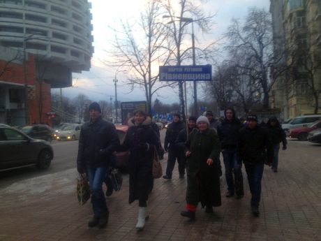 | Люди собираются идти на провластный митинг в Мариинский парк, 14 января. Фото УП |