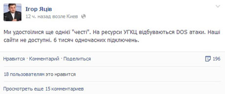 "Мы удостоились еще одной "чести". На ресурсы УГКЦ проводятся DOS атаки. Наши сайты не доступны. 6 тысяч одновременных подключений", - написал он в Facebook.
