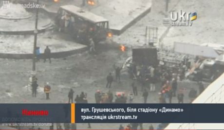 "8:00. На Грушевского Беркут пошел в атаку. Начал разбирать баррикаду".