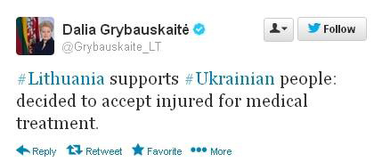 "Литва поддерживает украинский народ: решено принимать раненых на лечение", - написала она.