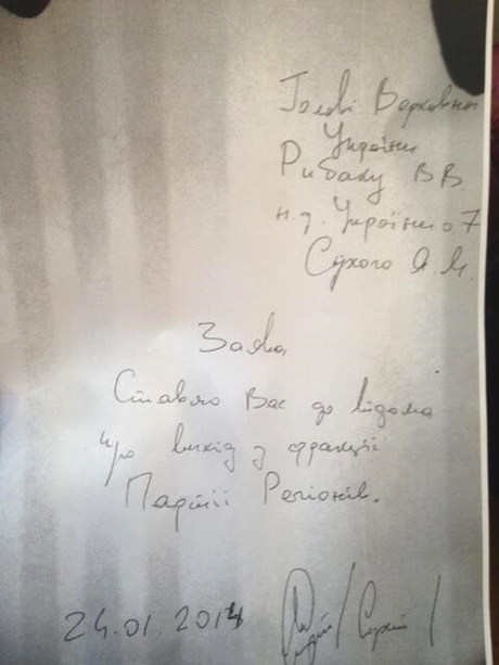 Сухой написал заявление о выходе из Партии регионов