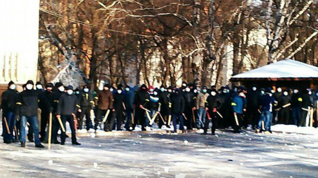 Также на месте находятся порядка 200-250 парней спортивного телосложения, их прикрывает милиция.