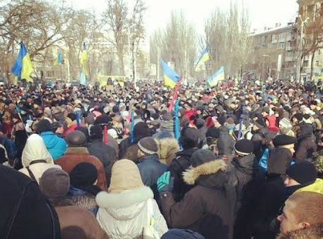 В Днепропетровске на вече неподалеку от здания ОГА собралось несколько тысяч жителей города.