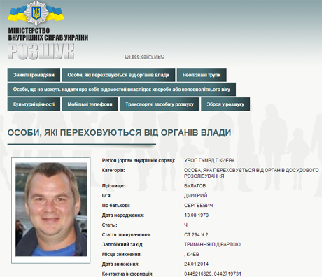 Активистов Евромайдана и Автомайдана Алексея Гриценко, Дмитрия Булатова и Сергея Кобу объявили в розыск.