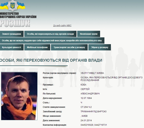 Кроме того, в розыск объявлен еще один активист - Сергей Коба.