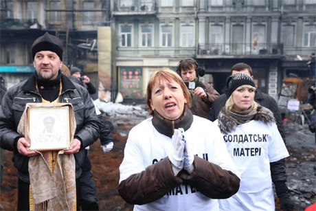 Около 20 женщин в футболках "солдатские матери" пришли на Грушевского со стороны милиции и убрали кресты, которые поставили митингующие.