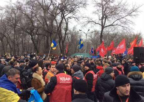Позже на Вече в Днепропетровске митингующие поймали и обезвредили группу титушек, которые прорывались к машине с озвучкой. Люди взяли титушек в кольцо, оттеснили и отобрали у них пакеты с зеленкой и яйцами.