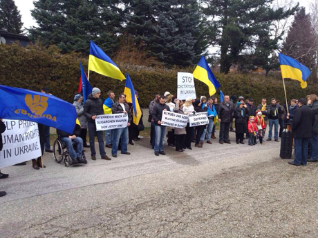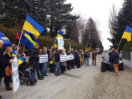Активисты Автомайдана в пригороде Вены (Австрия) провели акцию под особняком действующего главы администрации президента Украины Андрея Клюева.