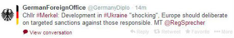 О такой позиции канцлера обнародовали в Twitter'e МИД Германии.
