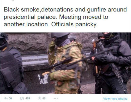 "Черный дым, взрывы и стрельба вокруг президентского дворца", - написал министр.