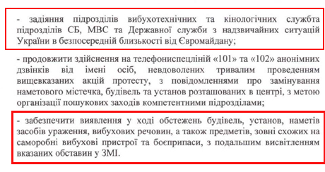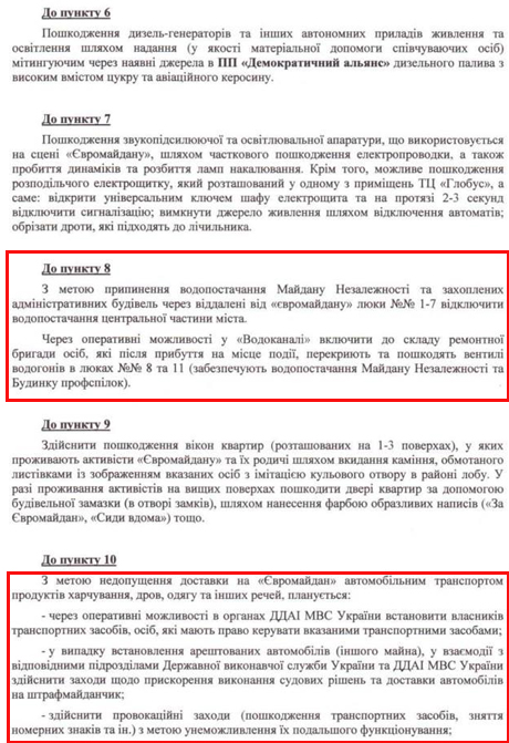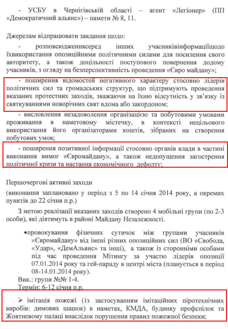Согласно документам, агенты должны были дискредитировать лидеров оппозиции, устраивать драки между разными организациями, которые находились на Майдане.
