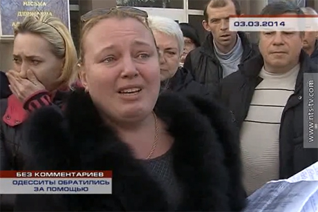 Второе видео сделано в Симферополе, куда "коренные одесситки" приехали попросить за помощью и рассказать, о том, что "поднялся народ против фашистов" и еще о том, что "50% своего имущества нужно теперь передать власти".