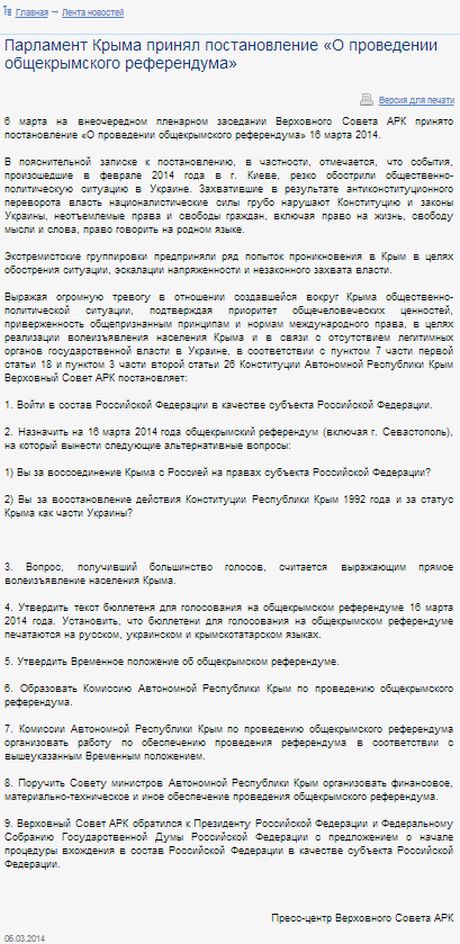 | Решение Верховного Совета АР Крым о референдуме и вхождении в РФ |