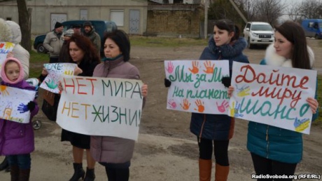 В Евпатории около 300 женщин собрались с лозунгом "Мы за мир!" и выступили против войны, "войск Путина", референдума "под дулом автомата".