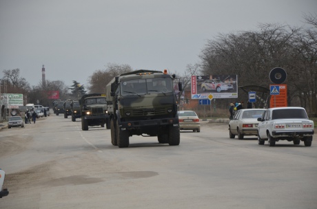 Как передают "Українські новини", также в Симферополе была замечена колонна грузовых автомобилей КамАЗ и "Урал", вероятно, принадлежащих российским военным.