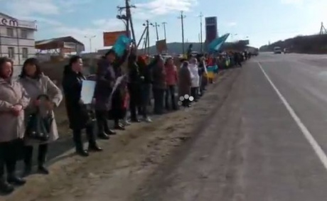 Люди вышли на главные автодороги полуострова и создают живую цепь в знак протеста против планов сепаратистов, передает "Радио Свобода".