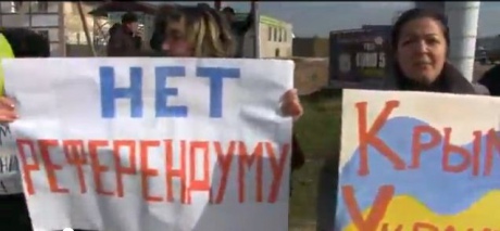 Люди выкрикивают "Референдум не пройдет!", "Крым – Украина".