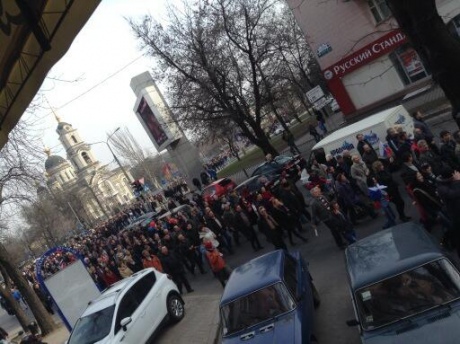 В Донецке "туристы" с флагами РФ митингуют за крымский референдум