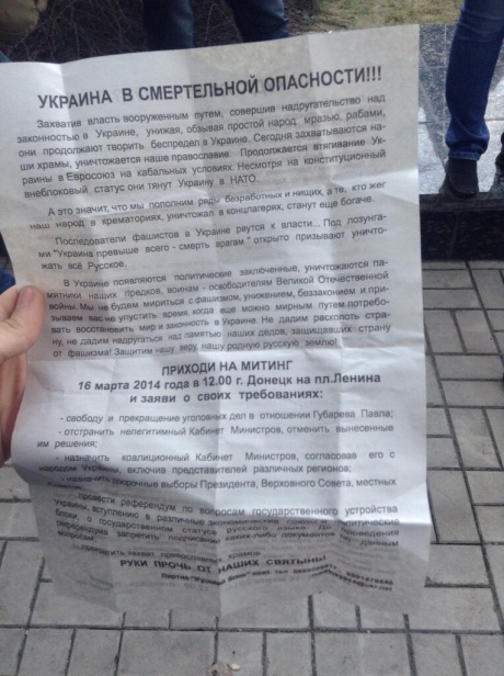 На митинге также раздают пророссийские агитки.