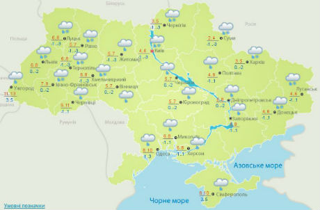 В Киеве и области ждут небольшого дождя с мокрым снегом, возможны порывы ветра до 15-20 м/с. Температура ночью -1..-3°С, днем может быть до +4.. +6° тепла.