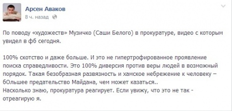 "Только что сообщили, что убили "Сашка Билого" (Александра Музычко) в Киеве. Два автомобиля подрезали его машину, вытащили, пересадили к себе. Затем выбросили на землю - руки за спиной в наручниках, два выстрела в сердце", - сообщил Доний.