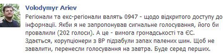 Вынеся этот законопроект на сигнальное голосование, Рада дала за него лишь 202 голоса "за" (в том числе один член КПУ).