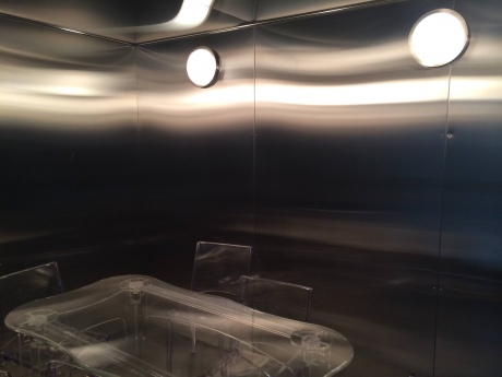 "Внутри обшита металлическими листами из нержавейки, размером с купе в поезде, внутри - только прозрачный пластиковый стол и стулья", - говорится в сообщении.