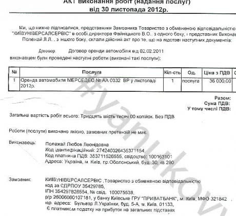 Полежай арендовала автомобиль " Мерседес " АА 0032 ВР в ООО " КиевУниверсалСервис " , которое обеспечивало хозяйственную деятельность резиденции " Межигорье " .