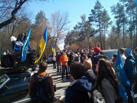 После этого колонна из полусотни автомобилей двинулась в Конча-Заспу, где, по информации активистов, расположен дом Анатолия Кинаха. Здесь хозяина участники акции тоже не дождались.
