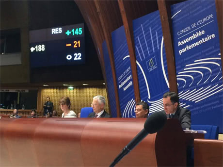 За такое решение проголосовали 145 членов ПАСЕ из 188 присутствующих.
