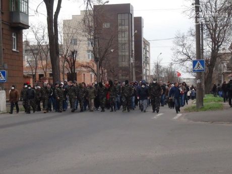 | Мирный митинг в Мариуполе охраняли люди в камуфляже |