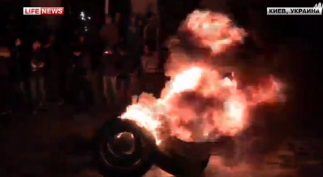 Под Радой жгли шины. В СНБО говорят, что митинг - на руку Москве