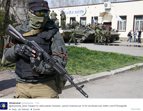 Pro-Russian separatists seize Ukrainian armoured vehicles http://t.co/q2yOKTcaG9 pic.twitter.com/1aZVpUQin7