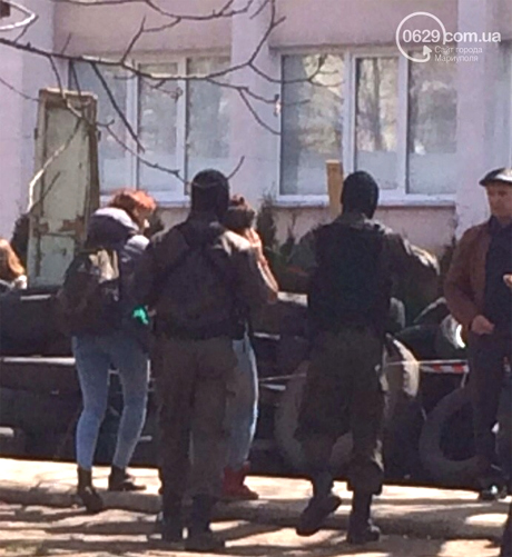Молодые парни в масках и камуфляже ходили по территории у здания мэрии, также находились в его помещении и на крыше, передает Сайт Мариуполя 0629.com.ua.