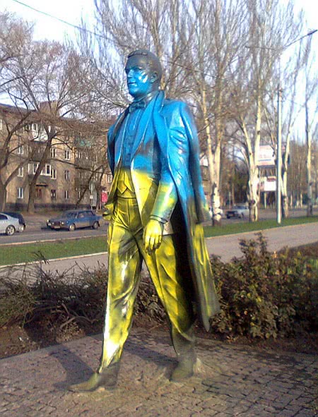 Памятник русскому артисту Иосифу Кобзону в Донецке стал желто-голубым.