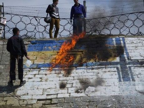 В Севастопольской бухте по инициативе мотоклуба "Ночные волки" начали смывать, стирать и выжигать украинские флаги — государственный и ВМСУ.