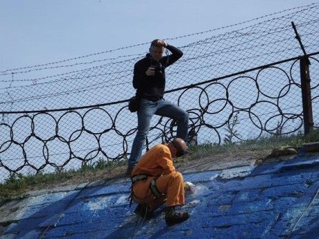 Для этого севастопольцы используют растворители, ветошь, алмазные фрезы. Пройти к месту работ можно только через территорию минно-торпедной части.