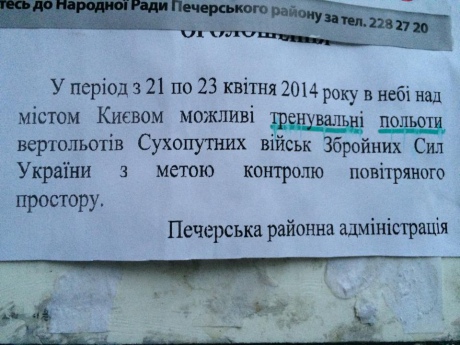Об этом говорится в объявлениях, размещенных в столице Печерской райадминистрацией.