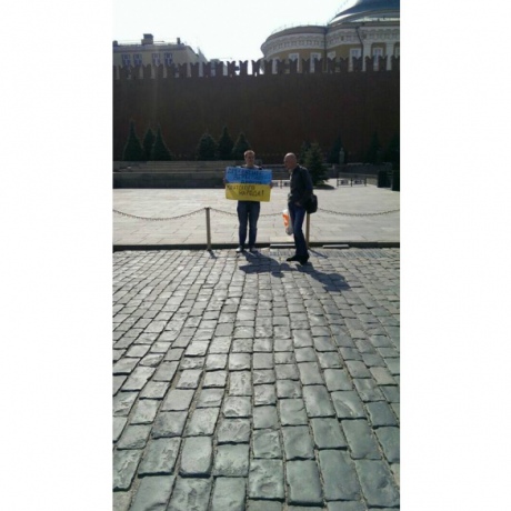 В Москве был задержан активист, который провел под стенами Кремля одиночный пикет в поддержку единства Украины и против агрессии РФ.